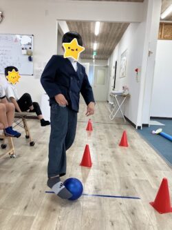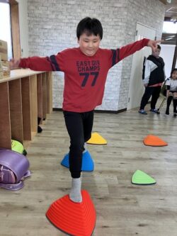 コーンドリブル・バランスストーン・高跳び・スクワットの4種目に挑戦しました。