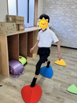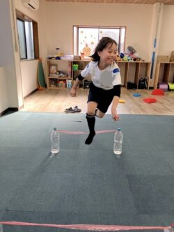 コーンドリブル・バランスストーン・高跳び・スクワットの4種目に挑戦しました。