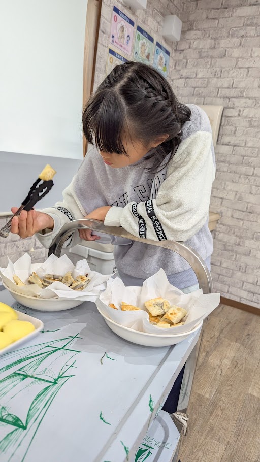 餃子の皮でチョコパイ作り♪手先と協力の楽しさを体験