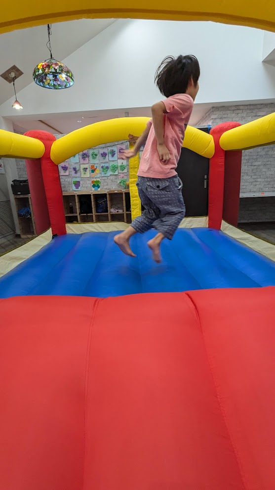 室内バウンサーと公園での活動