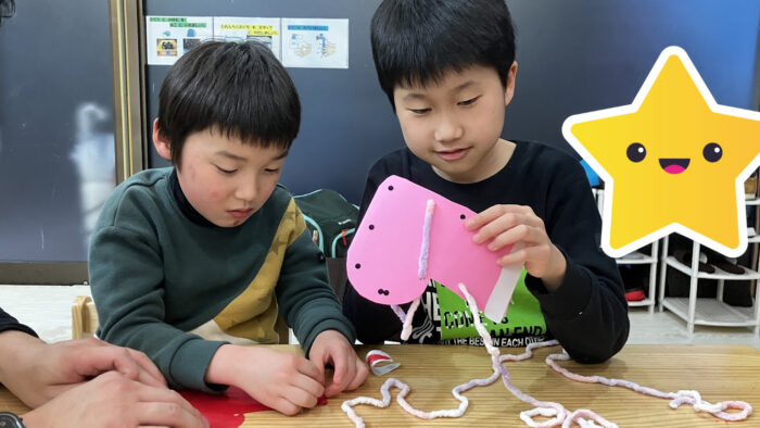 「できたよ」「ありがとう」笑顔と感謝があふれている。